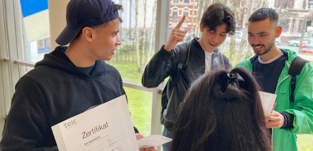 Zum vierten Mal gab es Ende Januar an unserer Schule telc-B1-Prüfungen. Vier unserer Studierenden haben teilgenommen – mit Erfolg! Herzlichen Glückwunsch! Zum Ende jedes Semesters finden an unserer Schule B1- und bei Bedarf auch B2-Prüfungen statt. InteressentInnen bereiten sich im Rahmen des Semesters VS3 oder zusätzlich zum Unterricht darauf vor und können die Prüfungen komfortabel in der eigenen Schule ablegen. Möglich wird dies durch die Kooperation mit der VHS Bochum.