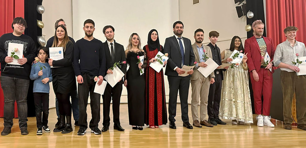 Am 5.4. gab es für den Deutsch-Grundkurs der K4 einen Tapetenwechsel: Anstelle des Fachunterrichts in der Schule gab es einen ersten Unterrichtsblock im Café „Brotzimmer“ in Dortmund, bei dem der bevorstehende Theaterbesuch bei Kaffee und köstlichen Backwaren vorbesprochen wurde. Um 11:00 Uhr begann dann die Aufführung der Inszenierung von Lessings dramatischem Gedicht im Kinder- und Jugendtheater in Dortmund – von Kindertheater war da allerdings wenig zu merken: Es ging richtig zur Sache, inklusive Bombenlärm, aktuellem Bezug zum heutigen Nahostkonflikt und gestohlenem Happy End. Das eindringliche Spiel der Darstellerinnen und Darsteller, das minimalistische Bühnenbild und die gelungene Adaption des Originaltextes zogen alle in ihren Bann: Plötzlich wurde die Bedeutung des Stückes (das zu lesen eine echte Herausforderung für uns war) hautnah spürbar. Was für ein Erlebnis!